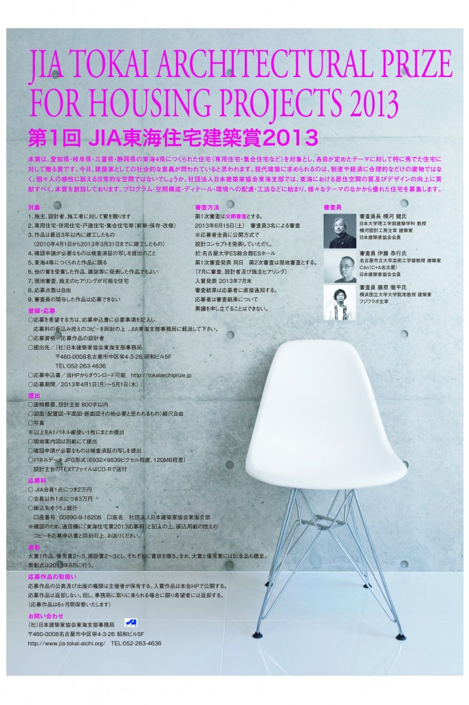 本賞は、愛知県・岐阜県・三重県・静岡県の東海4県につくられた住宅(専門住宅・集合住宅など)を対象とし、各自が定めたテーマに対して特に秀でた住宅に対して贈る賞です。